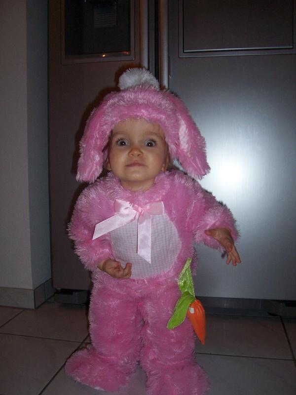 | Lillian's first Halloween as a cow: |